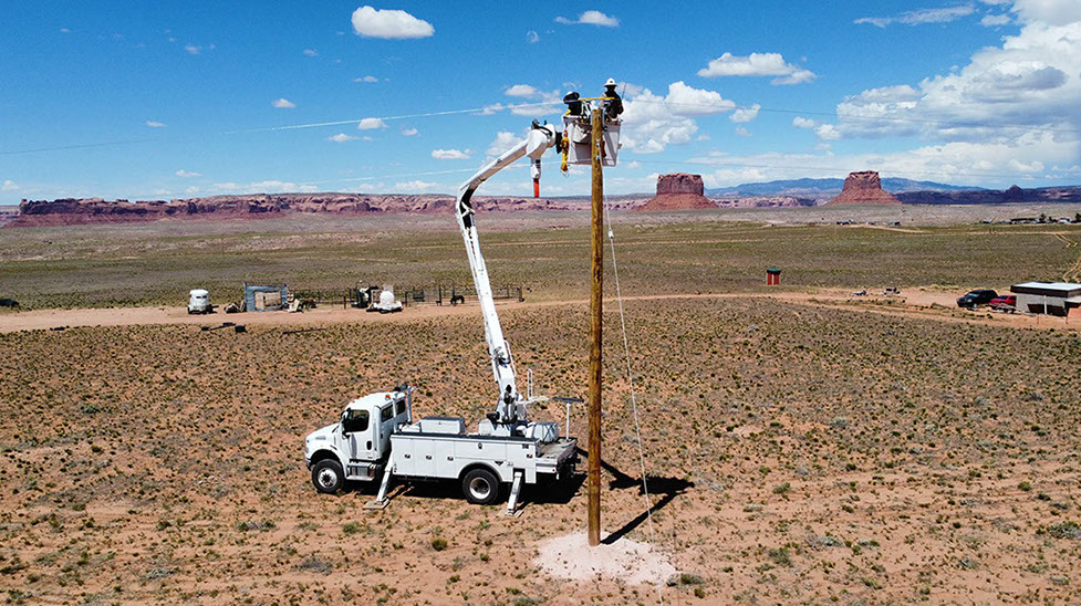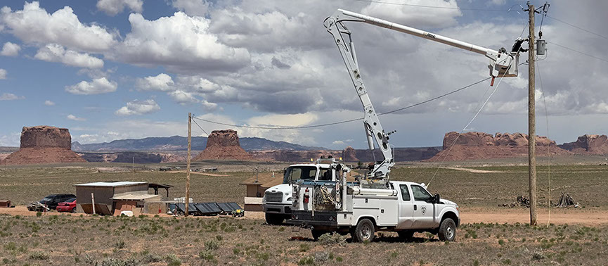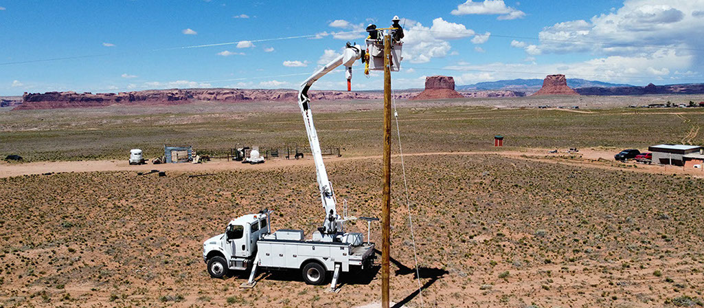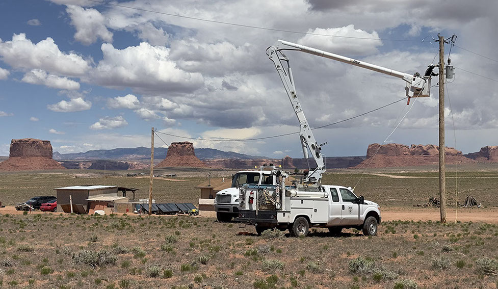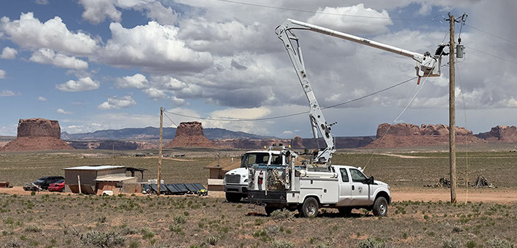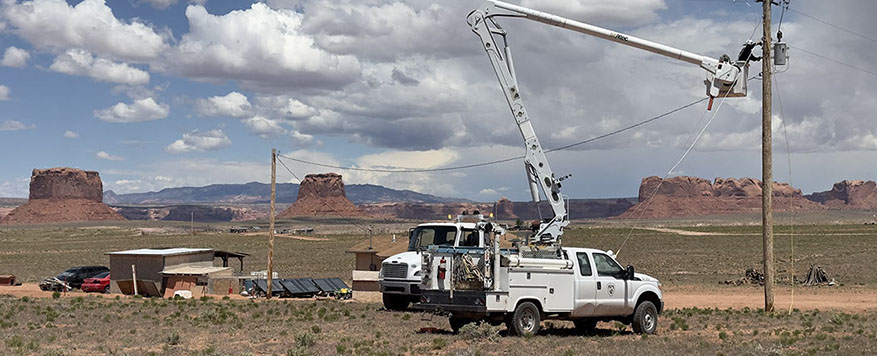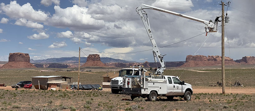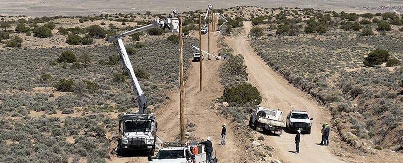 Light Up Navajo is a mutual aid training project that was launched in 2019 to connect homes under an expedited time frame. Each year, outside utilities send their electric crews to the Navajo Nation to help connect homes and extend powerlines.
